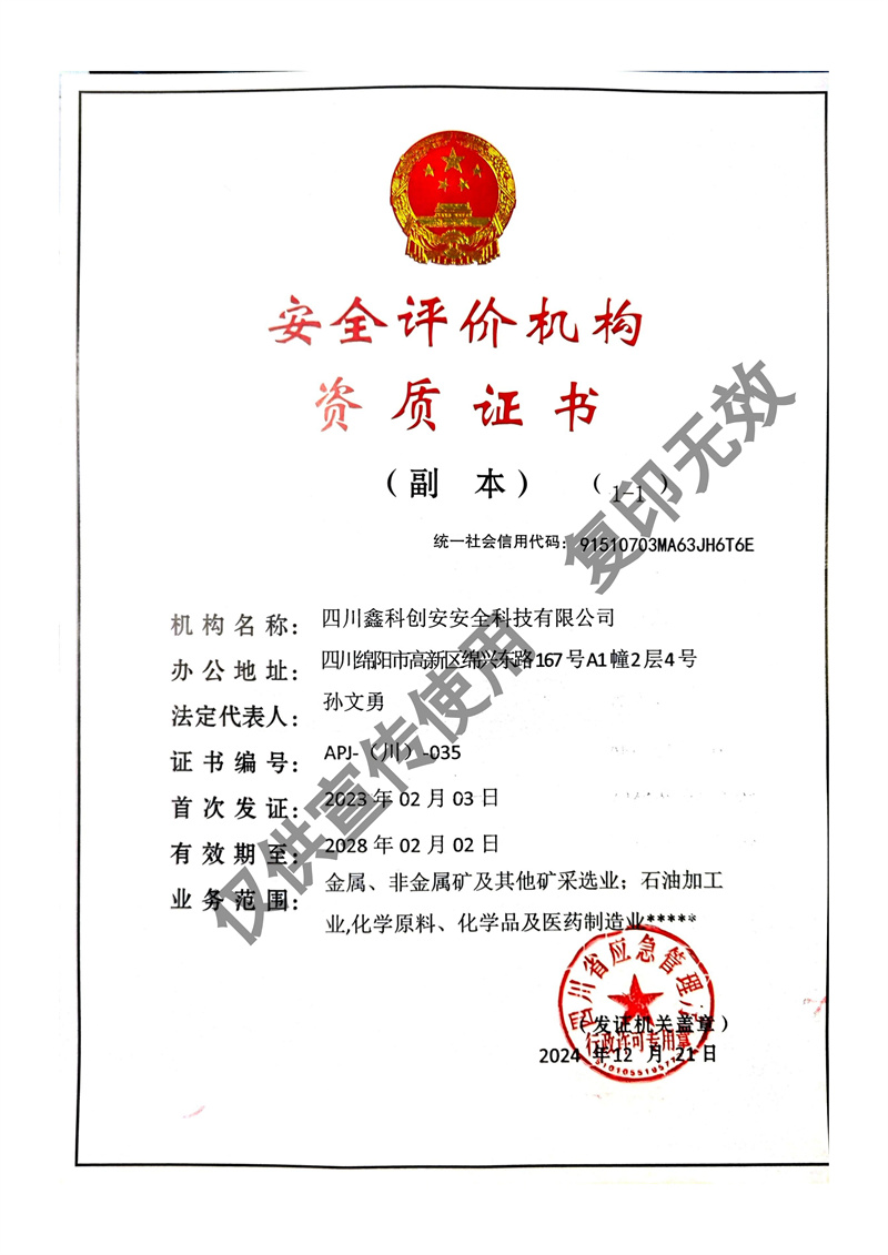 四川鑫科創(chuàng)安安全科技有限公司成立于2020年,是川北地區(qū)取得資質(zhì)的民營安全評價機(jī)構(gòu)(資質(zhì)證書編號:APJ-(川)-035)。并于2022年?duì)款^成立綜合應(yīng)急救援隊(duì)伍 - 綿陽曙光應(yīng)急救援中心。